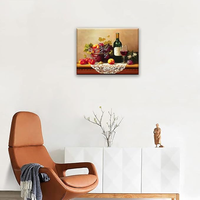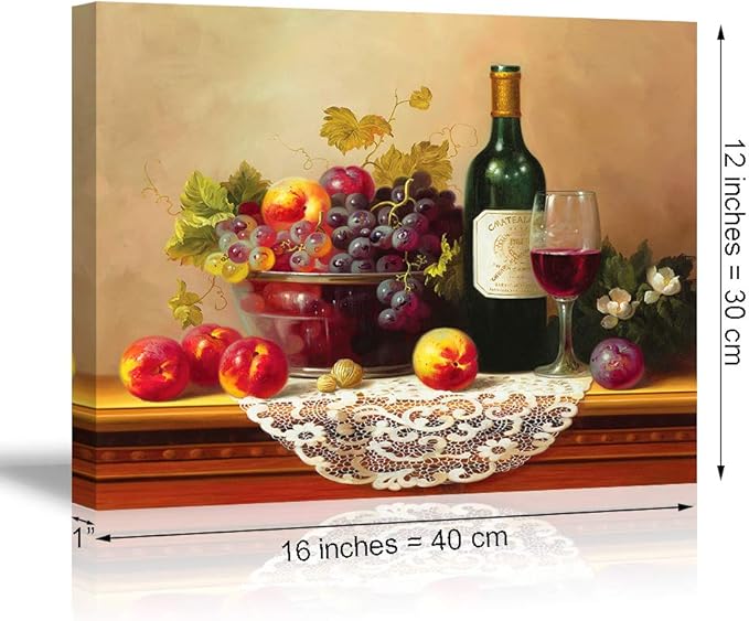 Retro Wine Pictures for Kitchen, PIY Vibrant Fruits Wall Art for Dining Room, Canvas Prints Oil Painting Reproduction of Vintage (Waterproof Artwork, Bracket Mounted Ready to Hang)