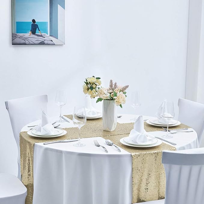 - Size: The 12" x 108" champagne sequin table runner is suitable for tables that can accommodate 8-10 people. Buy bigger pack, save more.