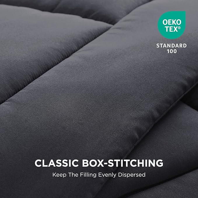 - BOX STITCHING DESIGN: Designed with a box-stitch construction that keeps the fluffy fill in place without shifting, the Bedsure Down Alternative Comforter ensures the filling is evenly distributed for the most relaxing sleep back to school
