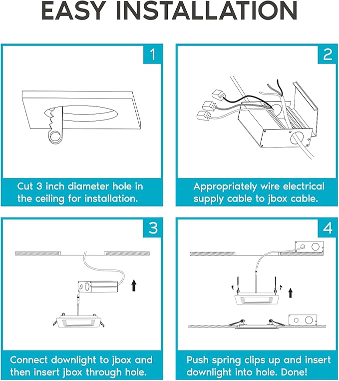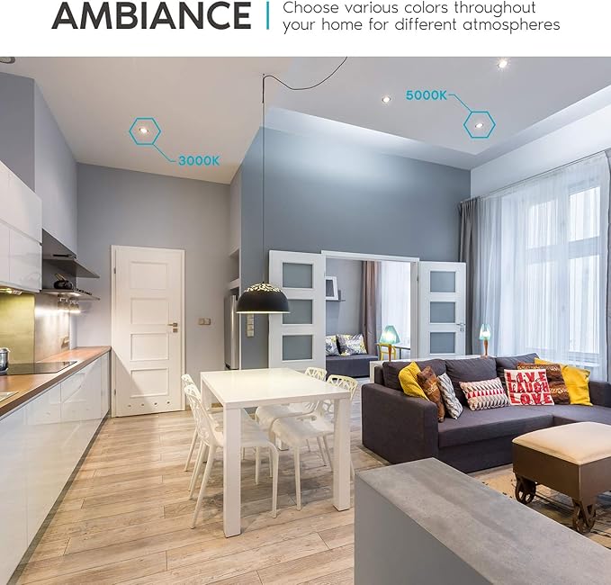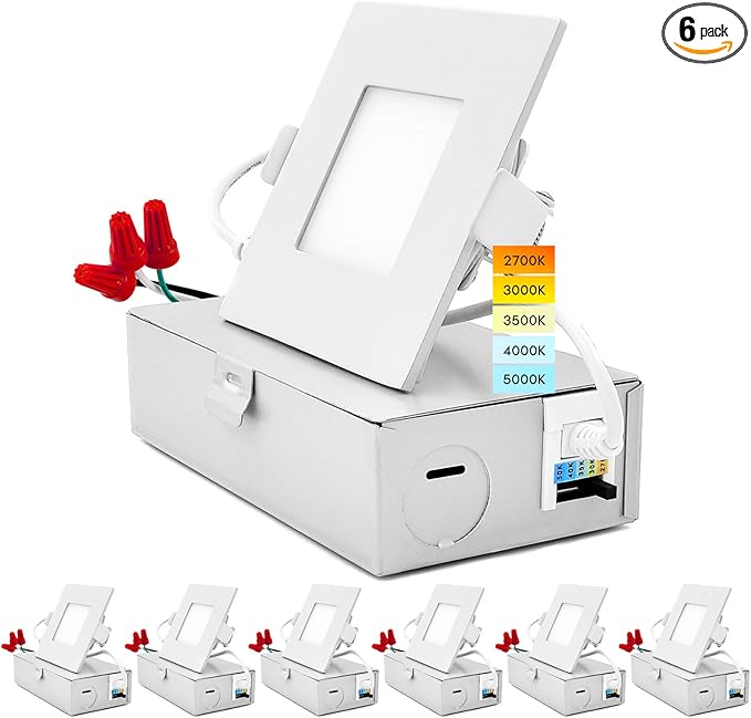 - 5 Color Options - Not sure what square recessed lighting color temperature you are looking for in your home? Each Led downlight has a simple to use switch connected that can change your lights to 2700K warm white, 3000K soft white, 3500K natural white, 4000K cool white, or 5000K bright white. Your home recessed ceiling lights will be adjustable through 5 color temperatures until you find the perfect light to select for your space.