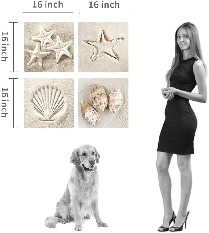 - Beach Canvas Set Wall Artwork: Wipe seashell print on canvas wall art with dry cloth only. A set includes 4 panels seashell artwork for walls canvas(each panel size is 12x12 inches). Hang sand painting canvas decor set side by side. Copyright licensed image with high resolution definition