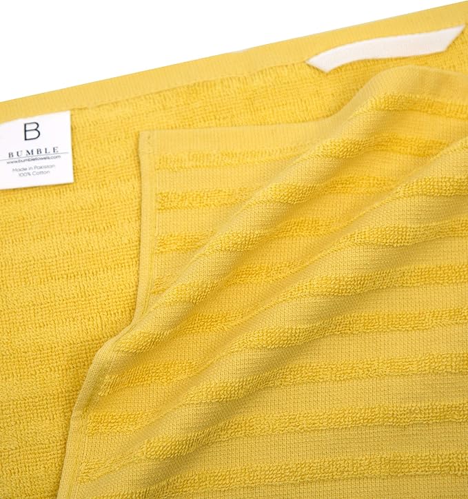 Premium Large Kitchen Hand Towels (20"x 28", 6 Pack) | Cotton Flat & Terry Towels | Highly Absorbent Tea Towels Set With Hanging Loop | Wide Stripe Yellow