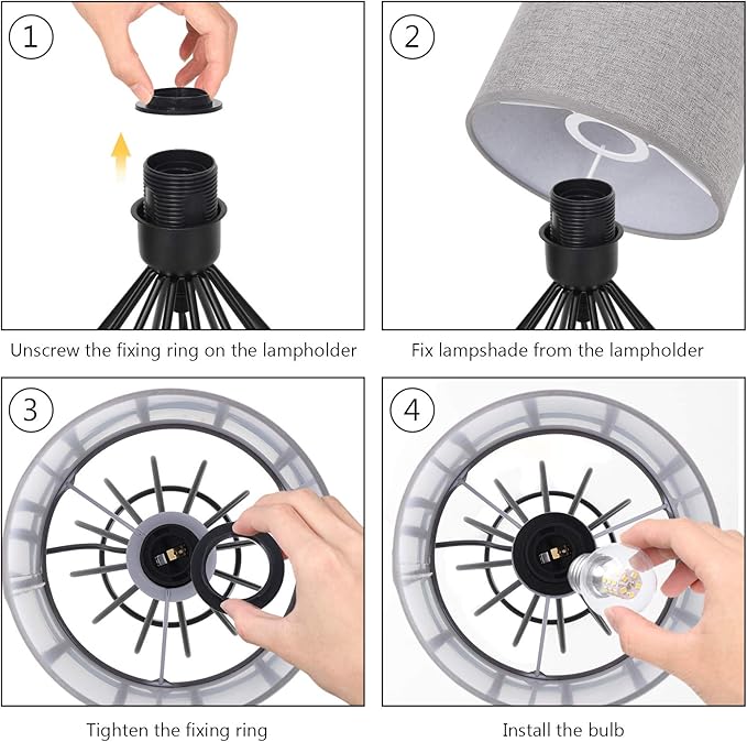 - Safety & Easy To Use : The cord and plug of the this lamp are UL listed which is no any security risks. E26 standard bulb required(Bulb Not Included). An ON/OFF button on the black power cord is convenient to use. It’s very easy to move to any place where you have lighting needs. Easy to assemble. Very nice minimalist light for the right price!