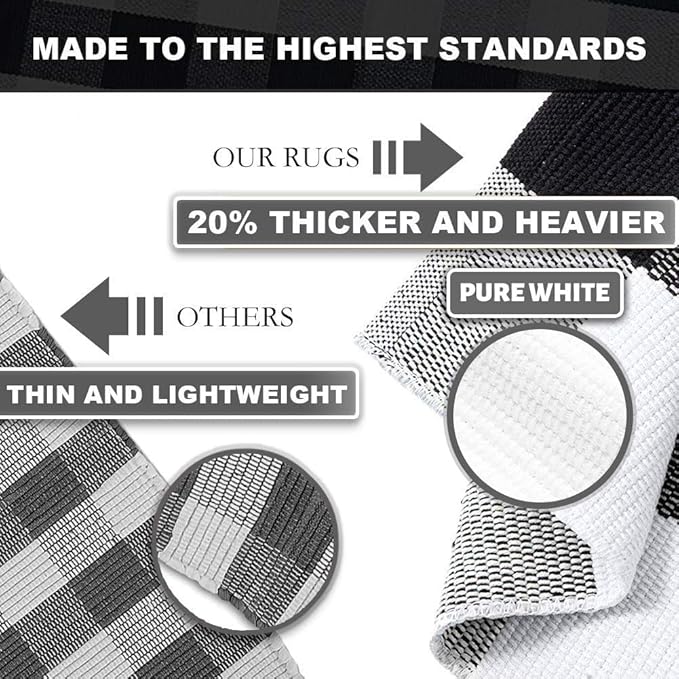 - Durable Cotton Blend: KOZYFLY buffalo rug is made from a soft, durable cotton-polyester blend with a 0.14-inch pile, perfect for entryways. Since it lacks a non-slip backing, recommend using a non-slip pad in high-traffic areas to prevent movement