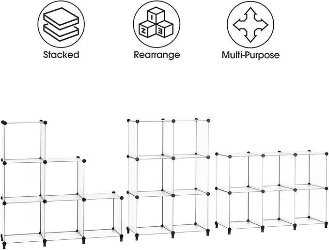 - 【Flexibility and Multi-purpose Use】: Any of these cubes can be removed out and used to build different shapes. With elegant color and size, you can put it in entryway, study room, bedroom, kids room or office. Such a great solution for lightweight storage needs.