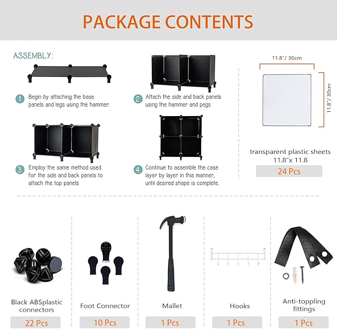 - 【Size & Material】: Each cube size is 11.8" x 11.8" x 11.8" (30 x 30 x 30cm), consisting of polyethylene plastic sheet, sturdy metal frame and ABS resin connectors.