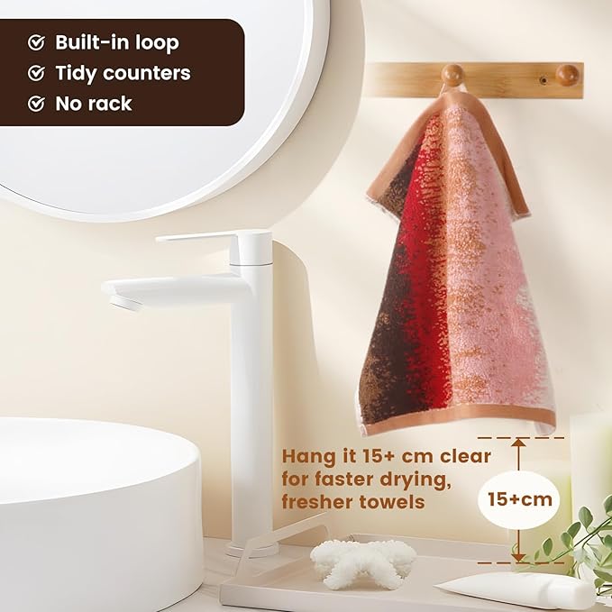- Hanging Convenience — Every washcloth comes with a reinforced corner loop for secure hanging—no slipping, quicker air-drying, and tidier countertops
