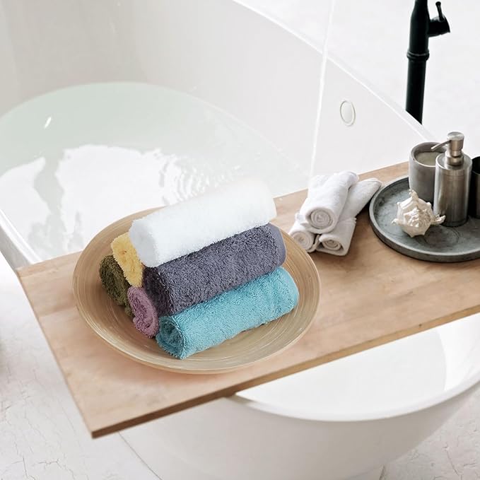 - Hanging Convenience — Every washcloth comes with a reinforced corner loop for secure hanging—no slipping, quicker air-drying, and tidier countertops