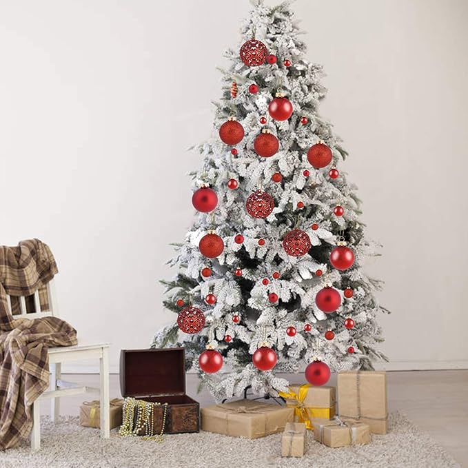 Christmas Balls Tree Ornaments, Shatterproof Christmas Decorations Set with Reusable Hand-held Gift Package for Holiday Xmas Tree Decor (100, Red)