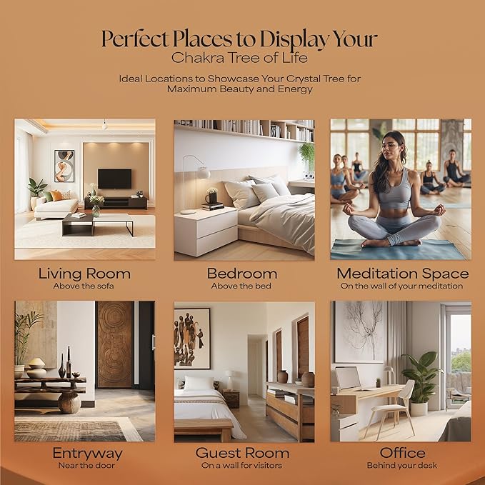- Versatile Home Decor: Elevate your space with this Seven Chakra Crystal Tree Size: 10-12 Inch (Golden Wire), perfect as room decor, home decor, or even as a charming centerpiece for your living room, kitchen, or bedroom. Its vibrant energy makes it an excellent addition to office desk accessories and wall decor.