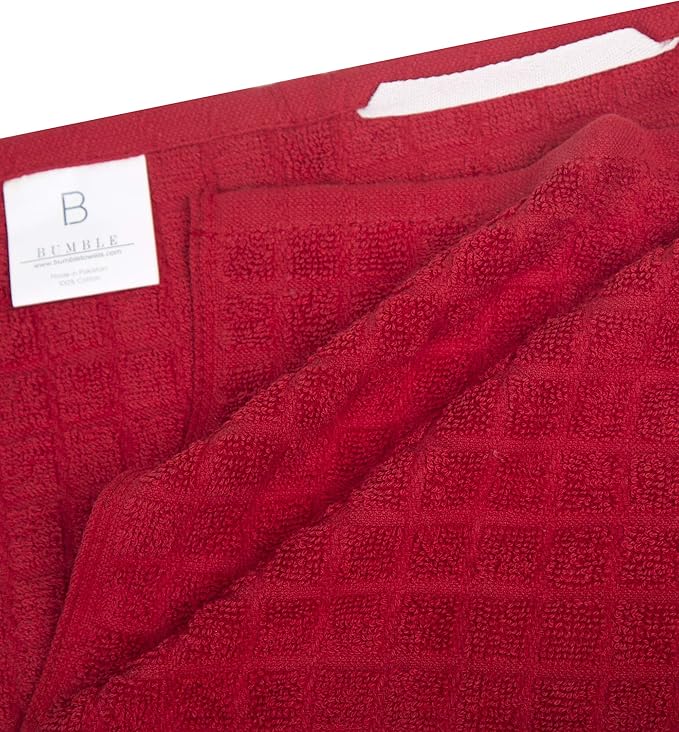Bumble Kitchen Towels | 100% Cotton Dish Towels with Hanging Loop | 16"x 28" | 380GSM | Absorbent Kitchen Towel Set | 6 Pack, Red