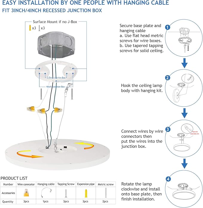- Easy Installation With Hanging Cable: Our 15.8 inch dimmable ceiling light flush mount comes with a hanging cable and all mounting hardware to help install it within 5 minutes. Even one person can install it quickly