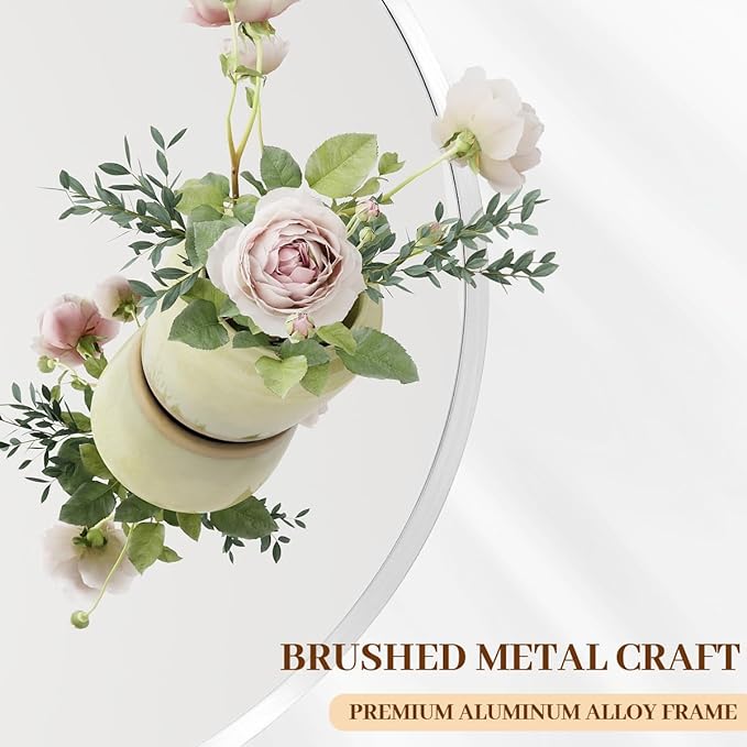 - Modern Brushed Frame Design: 24-inch white circle mirror is crafted of an aluminum alloy metal sleek frame which doubles as a protective bumper, making it ideal for high-traffic areas as bathroom mirror, entrance mirror, vanity mirror, living room mirror