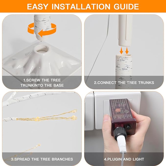 - 【Remote Controlled Birch Tree Light】You can use the remote control to turn on/off, change 8 lighting mode, flashing speed and 4 brightness, timing mode, very safe and easy to operate. This birch tree light adapter also has a switch function and a timing function to achieve the same functions as a remote control.