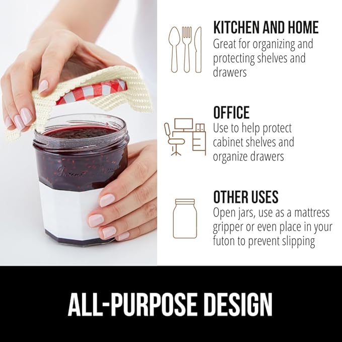 - KITCHEN, OFFICE, OR BATHROOM: liner can be used in several areas of your home; use it in your kitchen, pantry, work station, office room, laundry room, bathroom vanity shelves and more; perfect for organizing your space and home; use any excess liner pieces for opening jars and can also work great for a slipping futon, couch cushions, or mattresses
