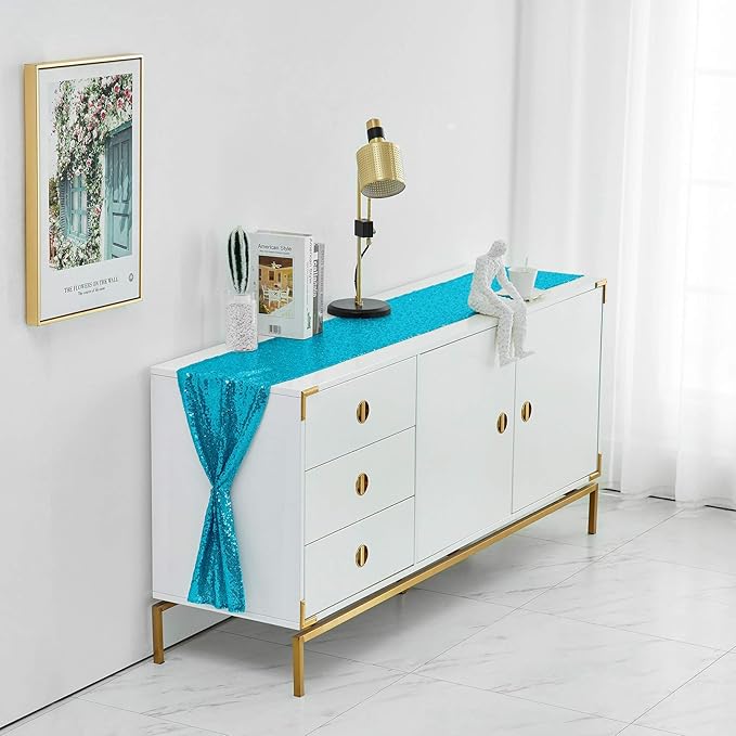 - Size: The 12" x 108" turquoise sequin table runner is suitable for tables that can accommodate 8-10 people
