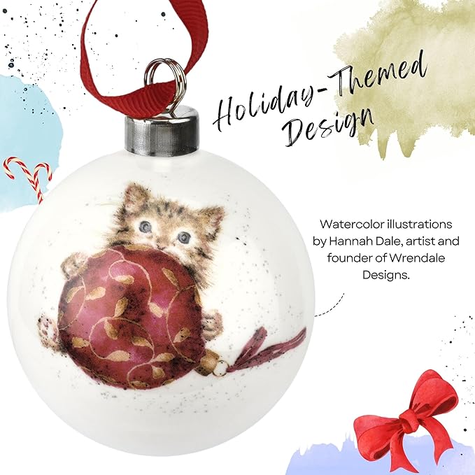 - Charming Holiday Ornament: Celebrate the season with this Royal Worcester Special Delivery bauble features a red ribbon to hang up and a gorgeous illustration of an adorable kitten who is trying to stay on the good list, this bauble will help to spread joy and happiness this festive season.