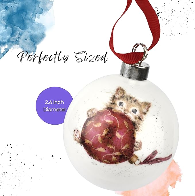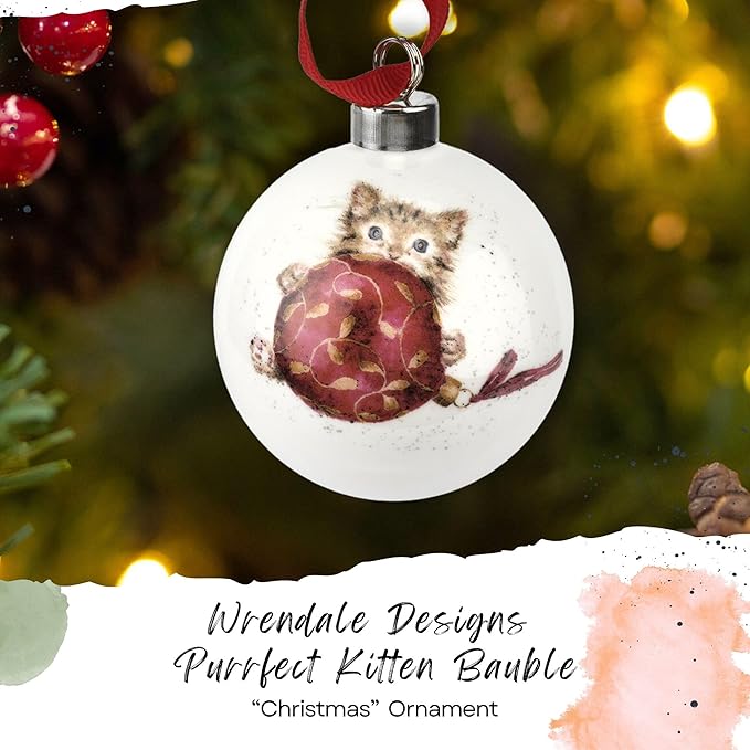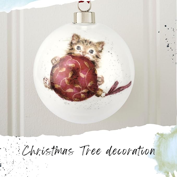 Royal Worcester Christmas Tree Ornament - Purrfect Bauble with Kitten Motif, Fine Bone China Festive Holiday Decorations, Hand-Painted Whimsical Animal Theme for Seasonal Home Decor