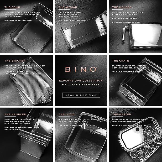 BINO Plastic Storage Bins - Small 2 Pack, White - THE SOHO COLLECTION - Pantry Organizers and Fridge Organizer