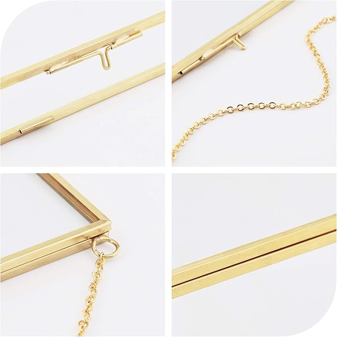 - 【Material】Glass pressed picture frame is made of high quality and durable brass, high definition glass, with a gold metal chain, you can be hanged on the wall easily.