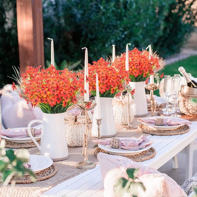 - ๐นใMulti-Functional Decorationใ- Designed for outdoor decoration. These lifelike flowers lend gorgeous charm to your front porch, walkway, patio, and garden; faux flowers are perfect for everyday decoration, birthdays, holidays, weddings, memorial sites, DIY projects, etc