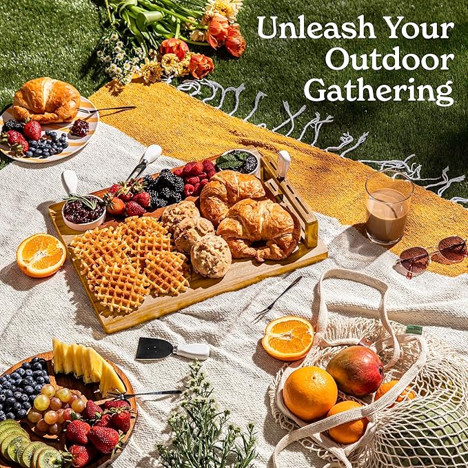 - Unleash Your Creativity - Consider our bamboo cheese board your blank canvas. Design stunning platters with a mix of meats, cheeses, veggies, and fruits, creating a visually appealing and delicious spread for any occasion.