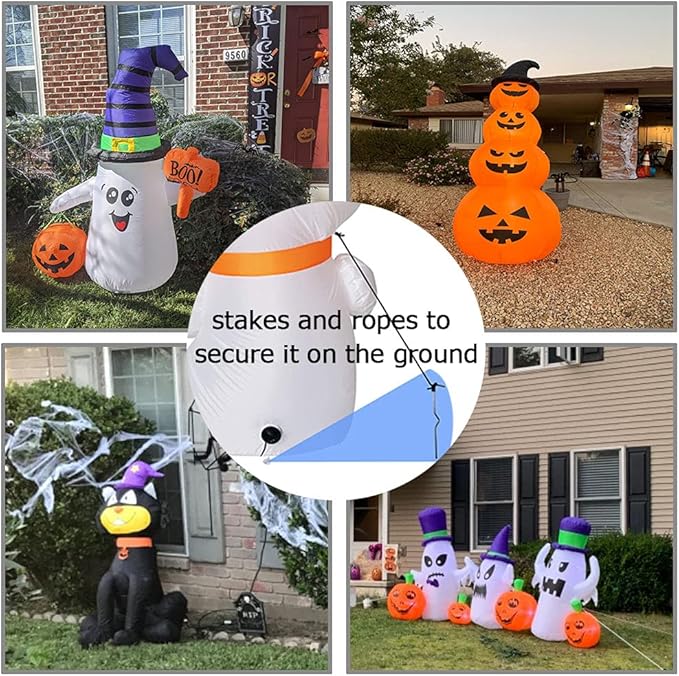 4 Pack Replacement 6.5ft Tethers and Aluminum Metal Stakes Tie Down Rope Strings for Halloween Christmas Xmas Blow Up Inflatable Spikes Outdoor Holiday Yard Garden Lawn Decoration Camping Tent