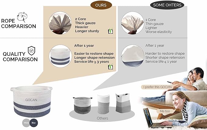 - ✅Natural & Organic Material: Made of 100% natural cotton and made by hand, this woven rope basket is safe and healthy for humans and pets, without any chemicals. It can be used as a laundry hamper, shoe storage, etc. Not only sturdy but also durable, you will love it.
