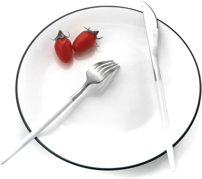 - ECO-FRIENDLY: Simple classic modern design would match well with your existing cutlery and elevate everyday meals into a fine dining experience,The handle is a eco-friendly color electroplating frosted appearance which is different from the common silver handle,special and comfortable,rust proof, high hardness.