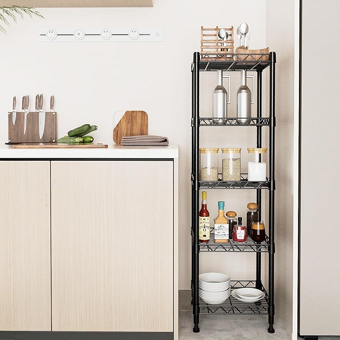 GIOTORENT 5 Tier Standing Shelving Metal Units, Adjustable Height Wire Shelf Display Rack for Laundry Bathroom Kitchen 11.8 W x 11.8 D x 50 H (5-Tier, Black)