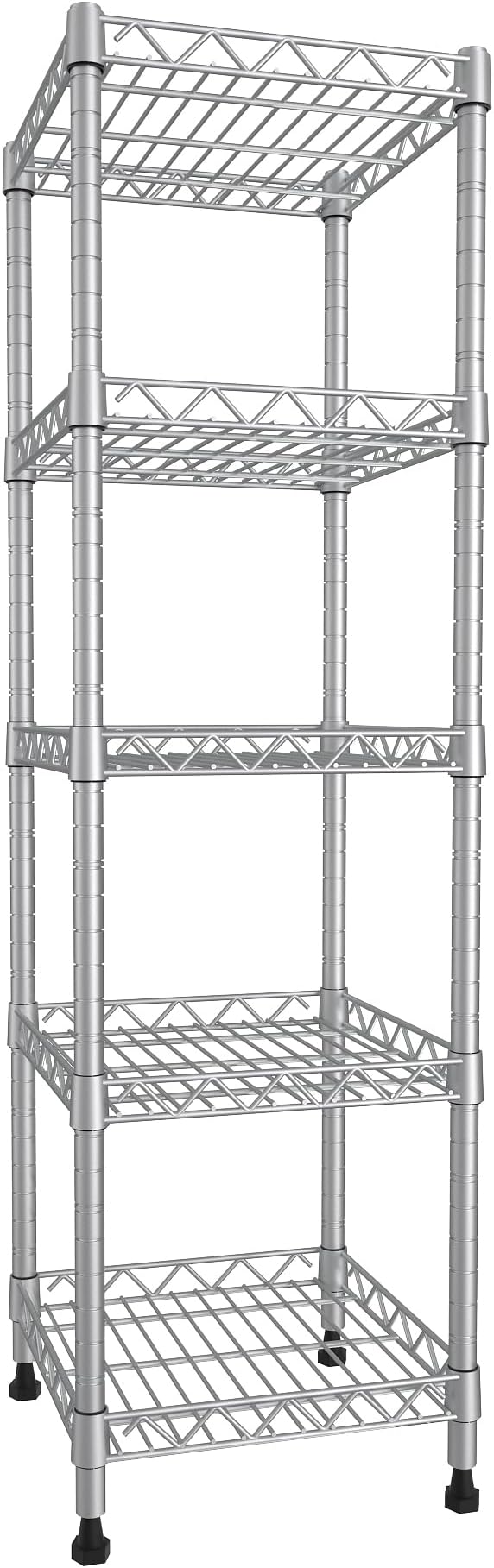 GIOTORENT 5 Tier Standing Shelving Metal Units, Adjustable Height Wire Shelf Display Rack for Laundry Bathroom Kitchen 11.8 W x 11.8 D x 50 H (5-Tier, Grey, Matte/Glossy Finish)