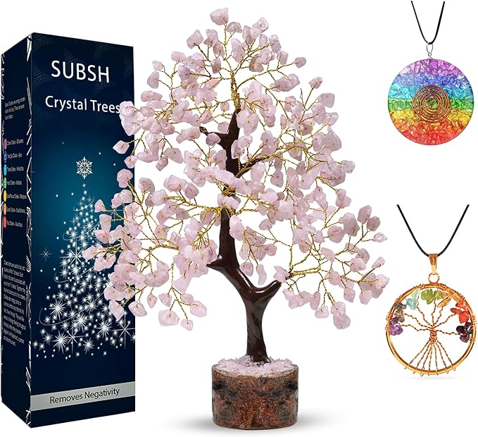 - Embrace Good Energy: Known for its healing properties, rose quartz is believed to promote love and compassion. The Chakra Pendants further enhance its energy, making it a perfect addition to any zen or meditation space. This crystal tree is more than just a decor item; it's a source of positivity and balance.