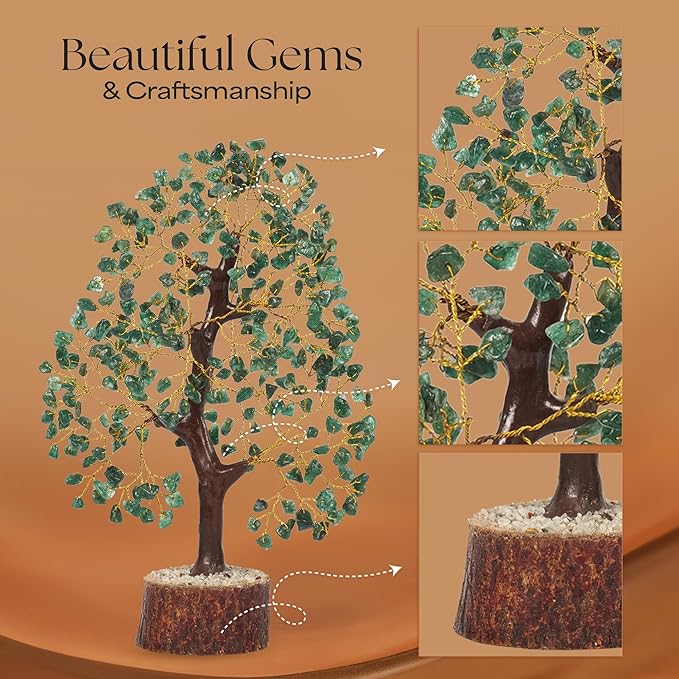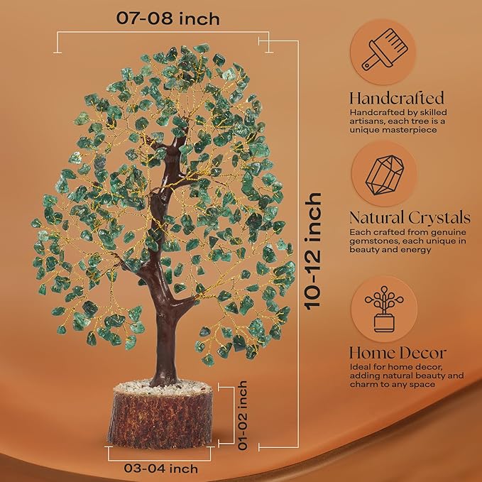 - Add Serenity and Balance: The Green Aventurine Crystal Tree, Size: 10-12 Inch (Golden Wire), featuring two chakra pendants, is a striking addition to any home decor. Perfect for enhancing room decor, whether it's in the living room, bedroom, or as office desk accessories, this tree brings a calming vibe to your space.