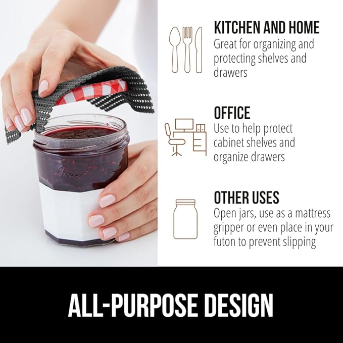 - KITCHEN, OFFICE, OR BATHROOM: liner can be used in several areas of your home; use it in your kitchen, pantry, work station, office room, laundry room, bathroom vanity shelves and more; perfect for organizing your space and home; use any excess liner pieces for opening jars and can also work great for a slipping futon, couch cushions, or mattresses