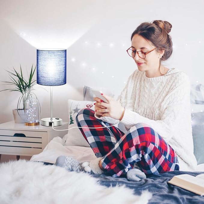 - ❤Eye-caring & Children Protection: This navy touch table lamp features an easy-to-install, all-in-one natural fabric lampshade. It minimizes direct eye contact, safeguarding your eyes against strain and fatigue. The lamp's weighted base with a non-slip mat and sturdy design makes it less prone to falling down or shaking, peace of mind for children's and pets' protection.