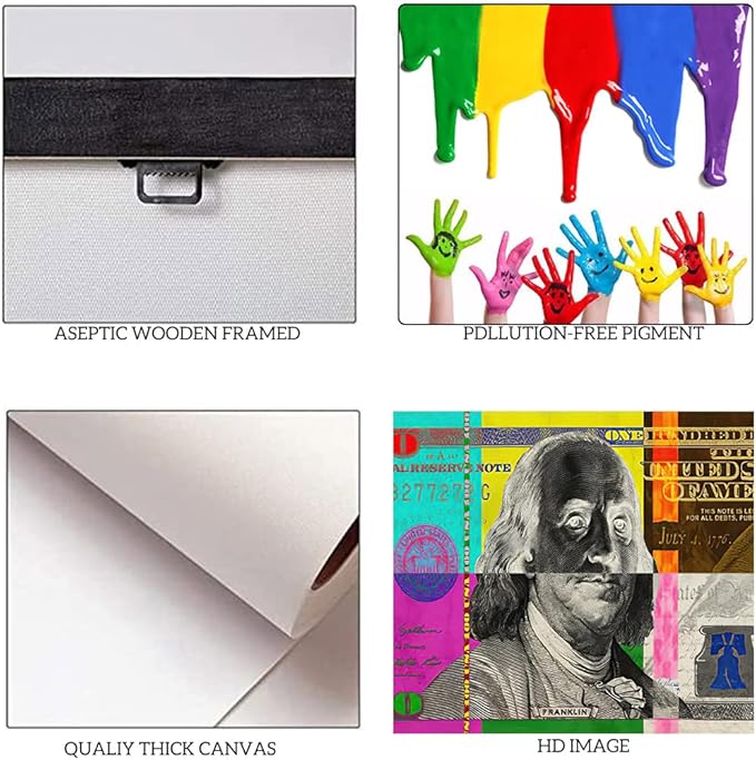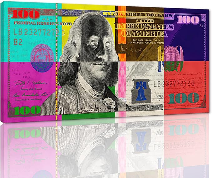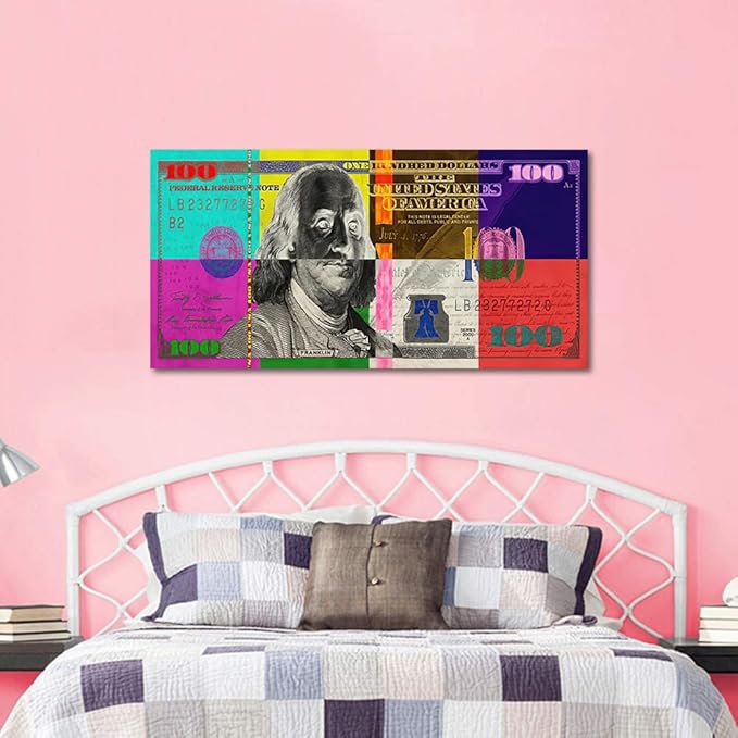 Yatsen Bridge Vivid Colorful 100 USD Artwork Abstract Creative Benjamin Franklin 100 Dollar Bill Color Blocks Canvas Paintings Wall Art HD Print Modern Home Office Decor Gallery Wrapped Easy to Hang
