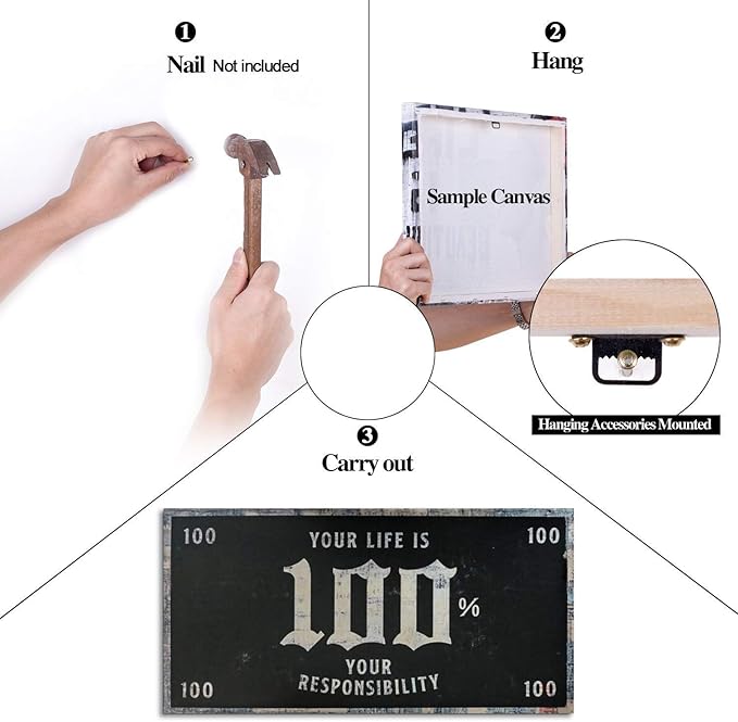 Black and White Motivational Canvas Artwork Contemporary Entrepreneur Office Wall Decor Inspirational Sayings Your Life is 100% Your Responsibility for Study Room Classroom Framed Art-40 Wx20 H