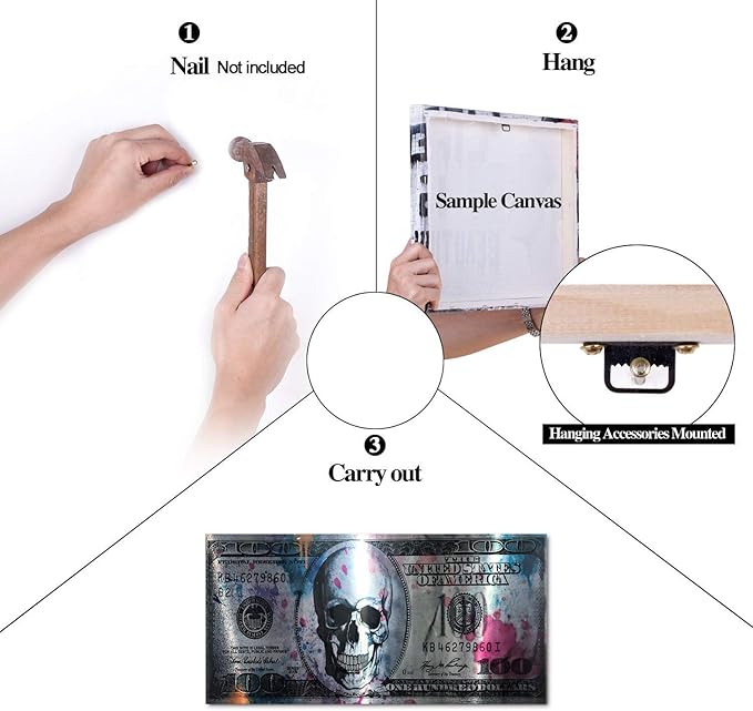 Office Decor Wall Art Canvas Dollar Skull Modern Art Canvas Poster Prints Creative Money 100 Picture Wall Decor Painting Artwork for Home Walls for Living Room Bedroom Framed Ready to Hang-32 Wx16 H