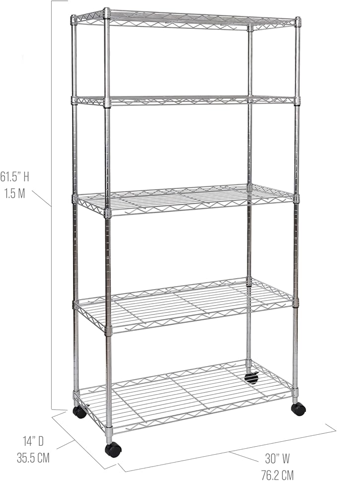 Seville Classics 5-Tier Wire Shelving with Wheels, 5-Tier, 30"" W x 14"" D (NEW MODEL), Chrome Plating, Plated Steel