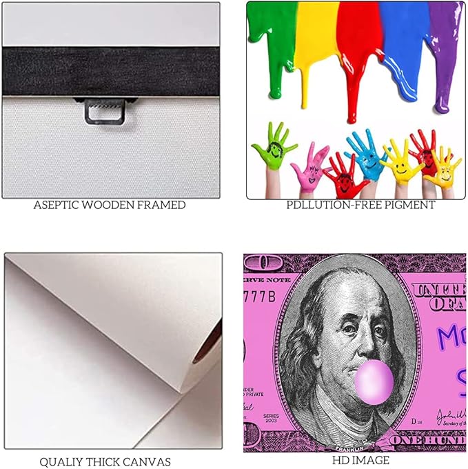Pink Inspirational Office Canvas Art Benjamin Franklin 100 USD Dollar with Positive Quote Money Never Sleeps Creative Money Artwork Gift Choice for Men Workplace Gym Decor Framed Easy to Put-40 inch x 20 inch