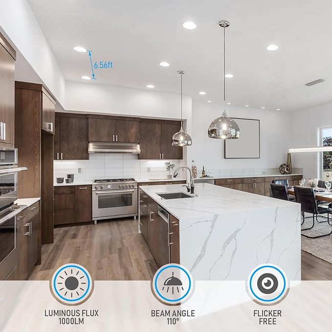 - 5%-100% Smooth Dimming: The 6 inch slim recessed lighting offer an extended dimming range from a cozy 5% to a vibrant 100%. Find the perfect lighting for any mood or occasion