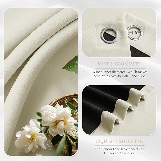 Beauoop Cream 100% Blackout Curtains 54 Inch Long 2 Panels for Bedroom Living Room Solid Room Darkening Thermal Insulated Soundproof Energy Saving Grommet Top Window Treatment Drapes,52x54 2 Set