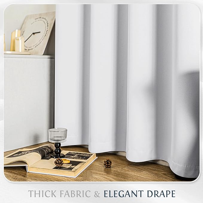 Beauoop White 100% Blackout Curtains 96 Inch Long 2 Panels for Bedroom Living Room Solid Room Darkening Thermal Insulated Soundproof Energy Saving Grommet Top Window Treatment Drapes,52x96 2 Set
