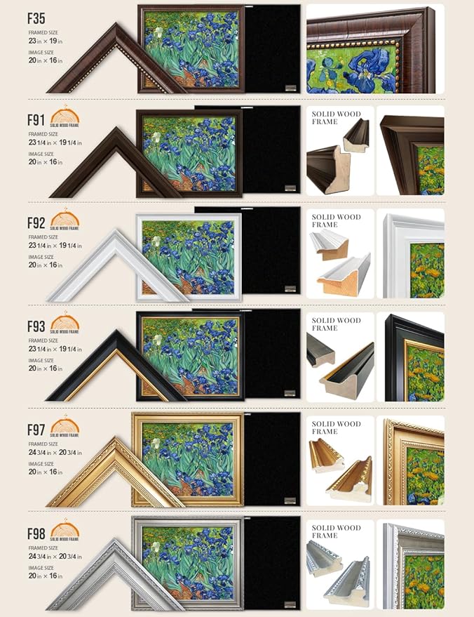 - Customize Your Artwork to Suit Your Style. Choose a classic solid wood frame for timeless elegance or a vintage-style PS frame for a modern, nostalgic touch. Each frame enhances the artwork's beauty while fitting seamlessly into your space. Image Size: 20"L x 16"; Total Framed Size varies by frame. Please see customization details for exact measurements.