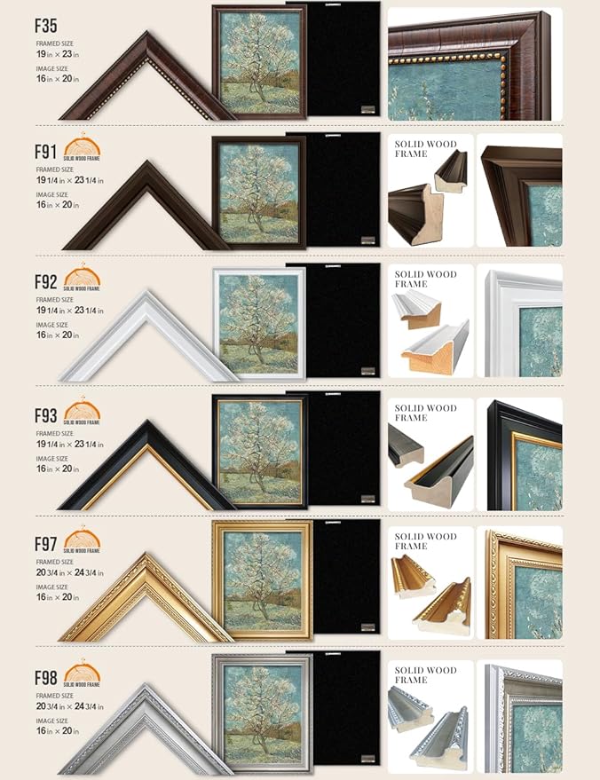 - Customize Your Artwork to Suit Your Style. Choose a classic solid wood frame for timeless elegance or a vintage-style PS frame for a modern, nostalgic touch. Each frame enhances the artwork's beauty while fitting seamlessly into your space. Image Size: 20"L x 16"; Total Framed Size varies by frame. Please see customization details for exact measurements.