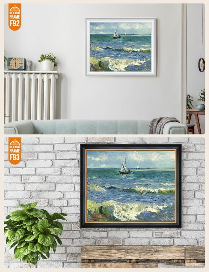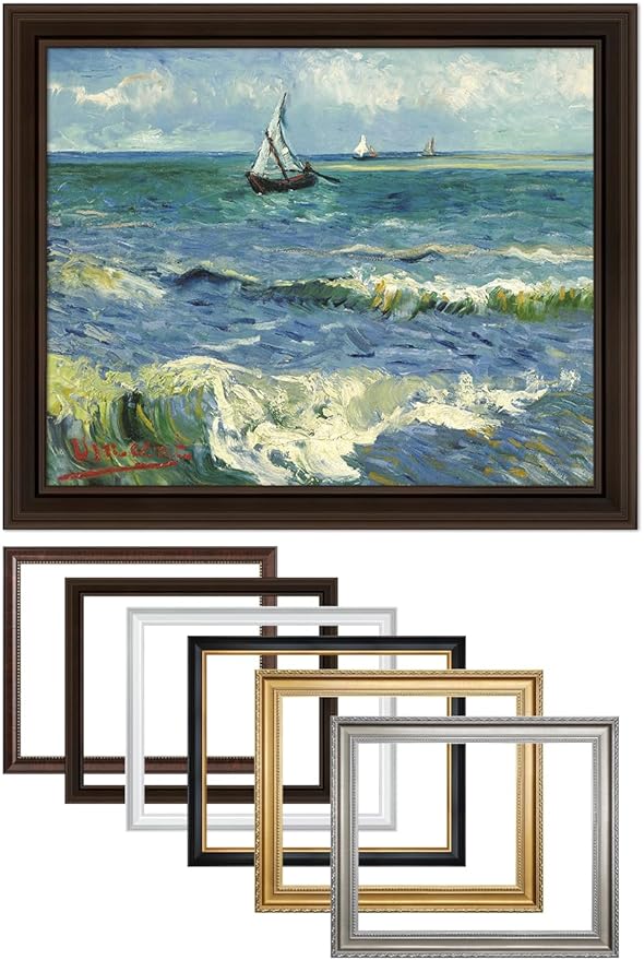 DECORARTS - The Sea at Les Saintes-Maries-de-la-Mer - Vincent Van Gogh Giclee Prints w/Antique Brown Frame for Wall Decor. Picture Size: 20x16, Total Size w/Frame: 23x19