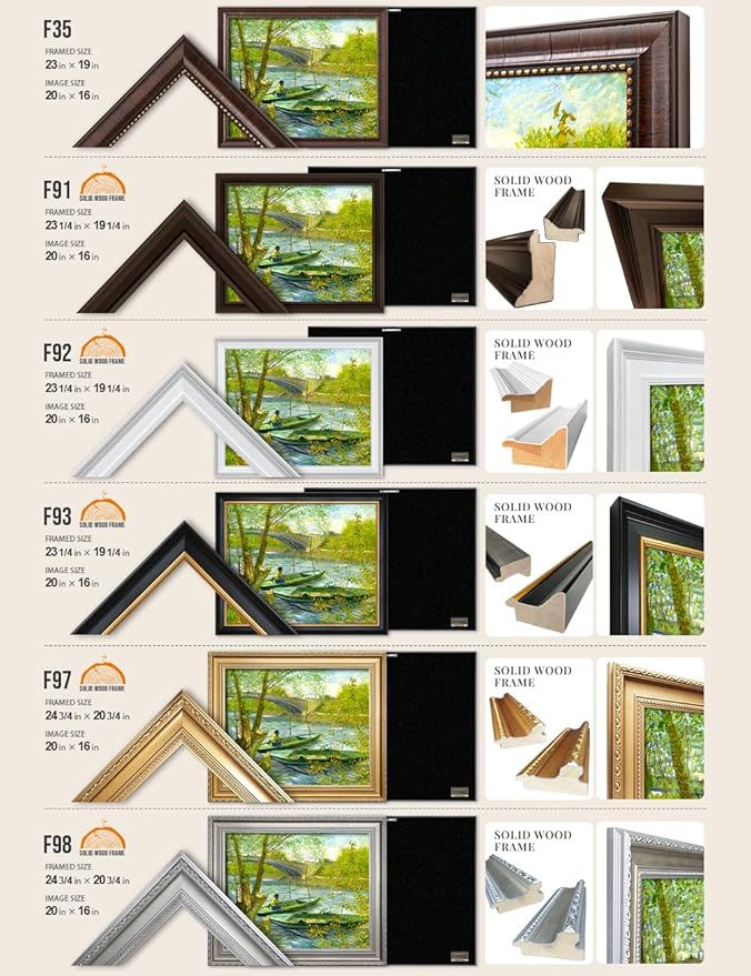 - Customize Your Artwork to Suit Your Style. Choose a classic solid wood frame for timeless elegance or a vintage-style PS frame for a modern, nostalgic touch. Each frame enhances the artwork's beauty while fitting seamlessly into your space. Image Size: 20"L x 16"; Total Framed Size varies by frame. Please see customization details for exact measurements.