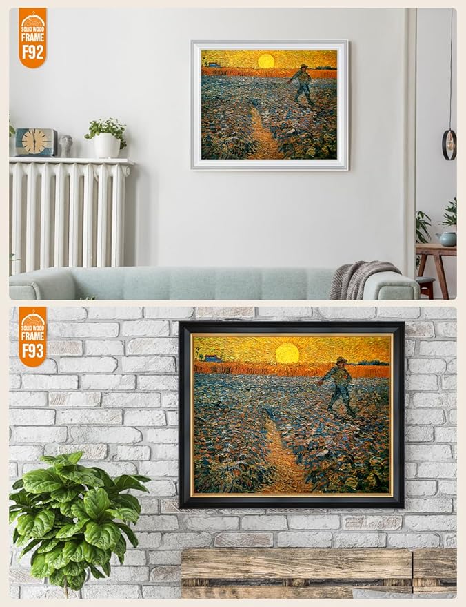 DECORARTS - The Sower - Vincent Van Gogh Giclee Prints w/Antique Brown Frame for Wall Decor. Picture Size: 20x16, Total Size w/Frame: 23x19