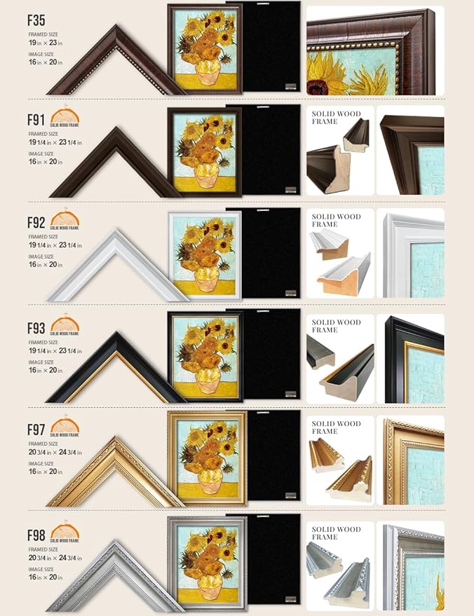 - Customize Your Artwork to Suit Your Style. Choose a classic solid wood frame for timeless elegance or a vintage-style PS frame for a modern, nostalgic touch. Each frame enhances the artwork's beauty while fitting seamlessly into your space. Image Size: 20"L x 16"; Total Framed Size varies by frame. Please see customization details for exact measurements.