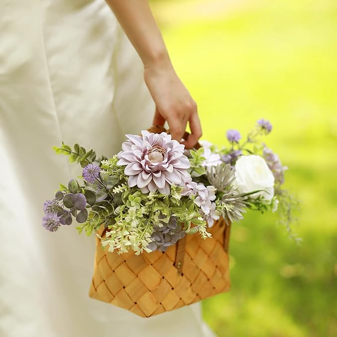 - 【42 Pcs Artificial Flowers Set】1.57 inch Daisy x7 pcs;2.75inch peony x4pcs;3.93inch dahlia x2pcs;2.75 inch rose x3pcs;3.93inch peony x1pcs;1.96inch peony x2pcs;1.96 inch rose x2pcs;1.96 inch Hydrangea x3pcs;3.14 inch Hydrangea branch x2pcs;6.29 inch Eucalyptus leaf branch x5pcs;1.57 inch orchid x2pcs;other berries Stems x9pcs;Flower rod wire x32pcs;(Attached Raffia and hot melt accessories)